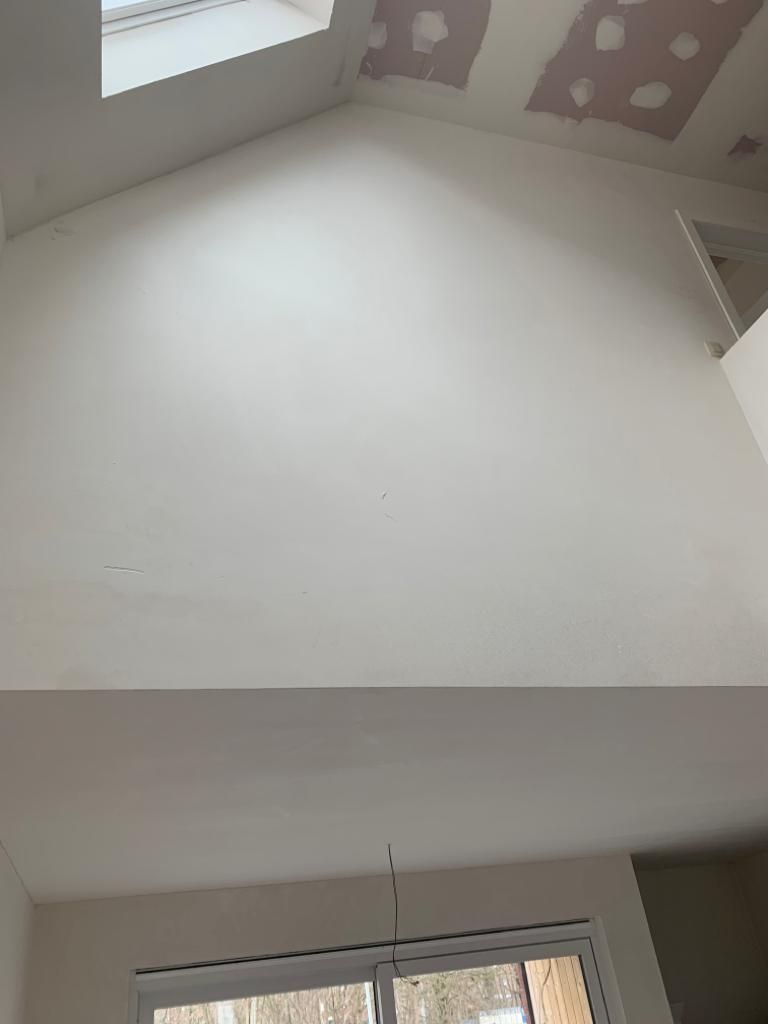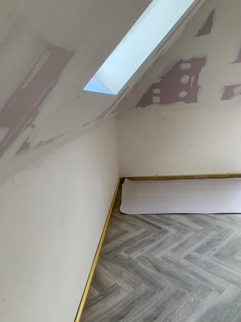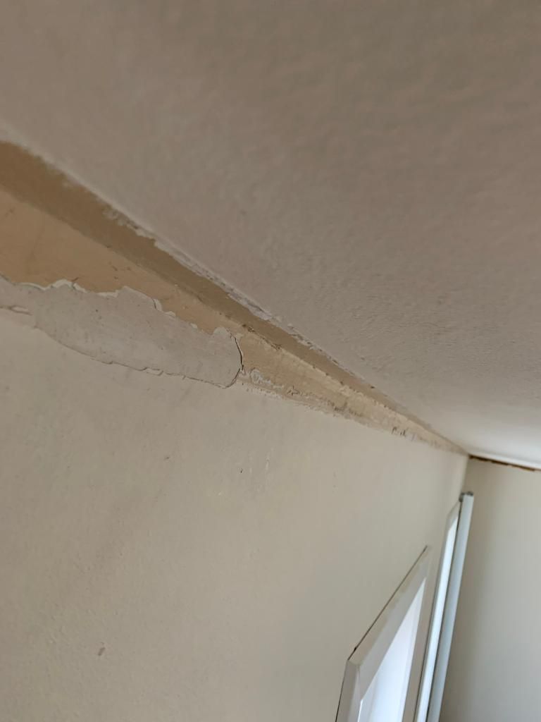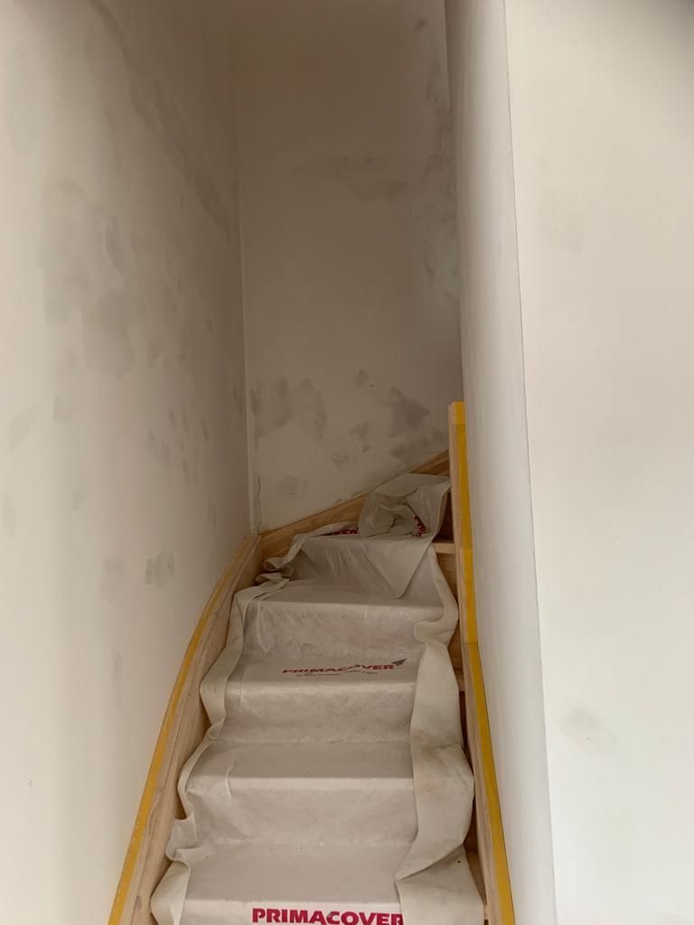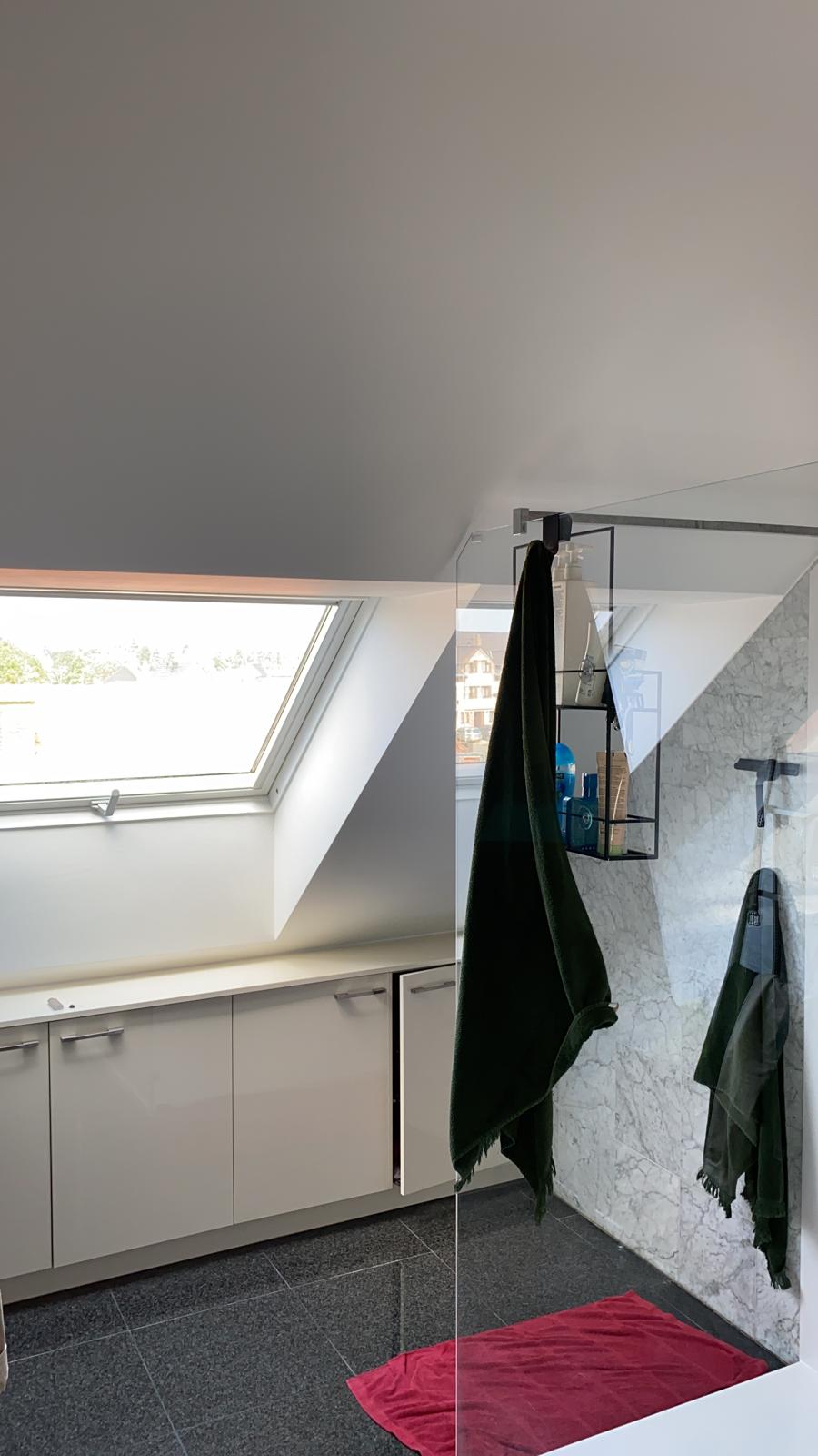 In deze woonkamer waren de muren en plafond in een zeer slechte staat dmv het uitplamuren en schuren van de muren met een afwerking van 1ste klas afwasbare, isolerende verf (Sikkens alphacryl Morpha).